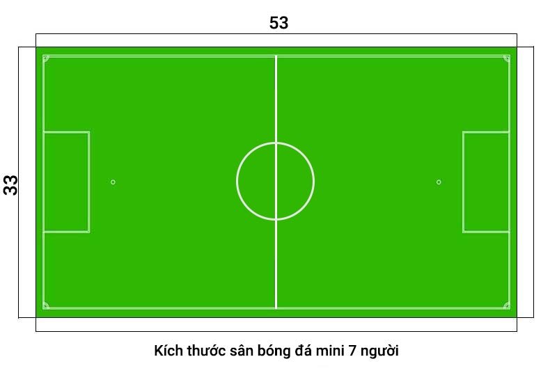 Theo quy định và thực tế áp dụng phổ biến, kích thước sân bóng đá cho 7 ngườii thường có dạng hình chữ nhật. Chiều dài sân thường dao động trong khoảng từ 50 mét đến 75 mét, trong khi chiều rộng sân thường nằm trong khoảng từ 40 mét đến 55 mét.